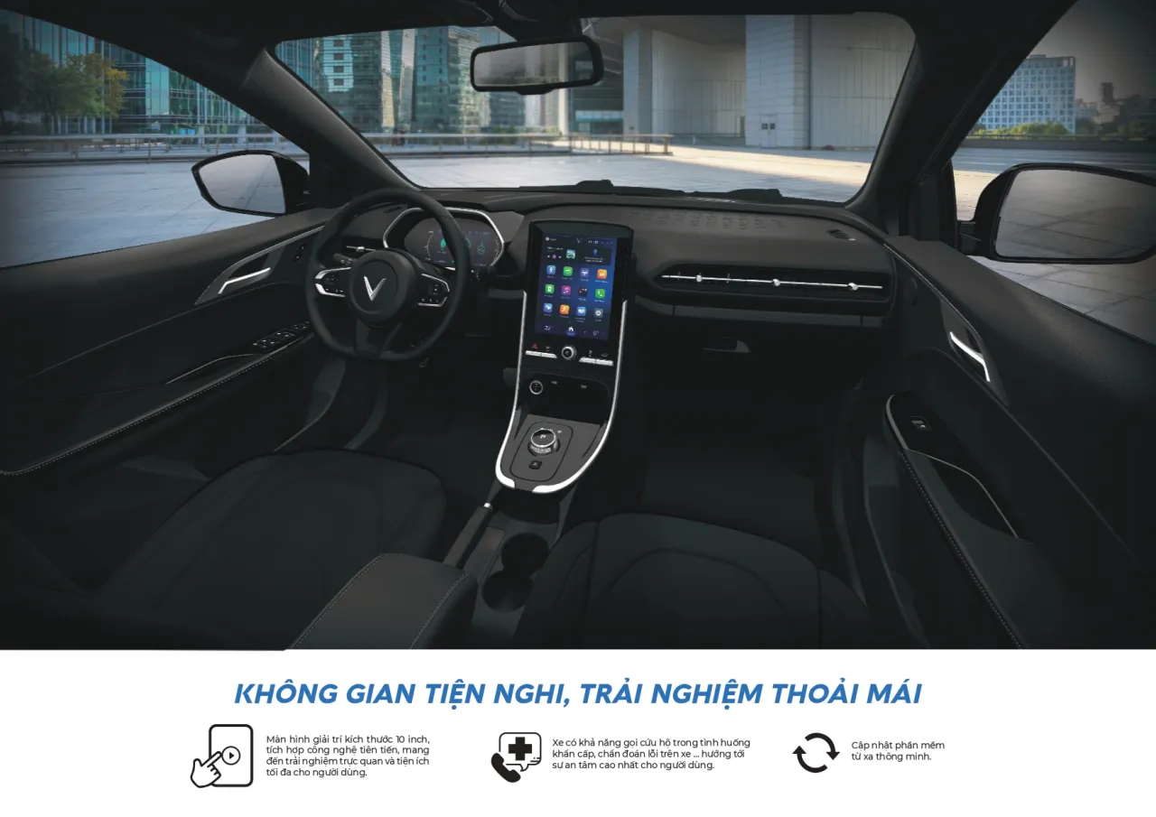 Thiết kế nội thất Nerio Green gần như kế thừa toàn bộ từ VF e34 với màn hình giải trí trung tâm đặt dọc, nối liền bảng điều khiển trung tâm, tạo thành dạng thác nước cá tính. Vô-lăng vát đáy thể thao tích hợp các phím bấm chức năng. Phía sau bố trí đồng hồ thông tin.