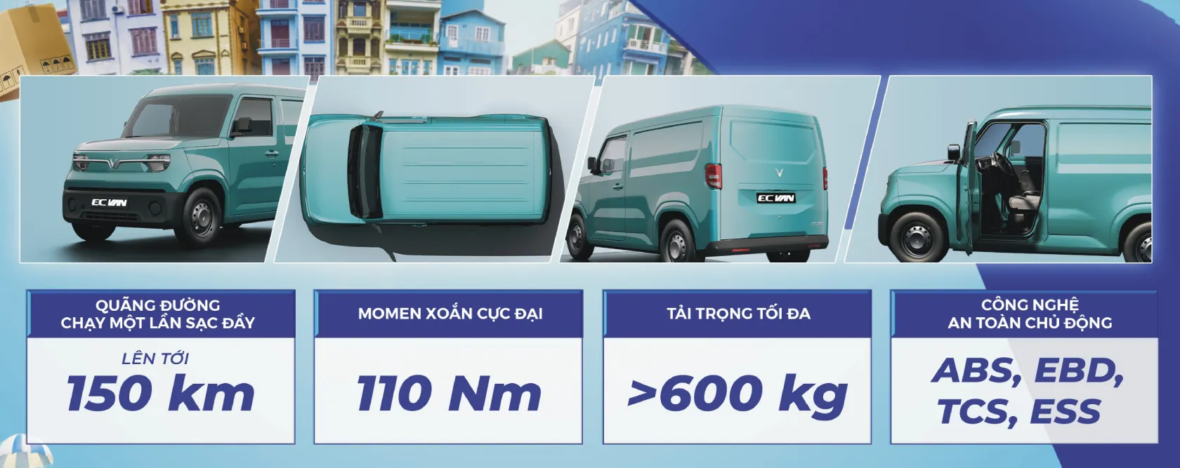 Ngày 13/05/2025, VinFast chính thức công bố ra mắt dòng xe điện chở hàng cỡ nhỏ EC Van, hướng đến cuộc cách mạng xanh trong vận tải hàng hóa. Với tải trọng trên 600 kg cùng kích cỡ gọn gàng, khả năng vận hành linh hoạt, VinFast EC Van là lựa chọn tối ưu cho nhu cầu vận chuyển hàng quãng ngắn của các đơn vị kinh doanh, đồng thời là phương tiện sinh kế phù hợp cho kinh tế hộ gia đình.