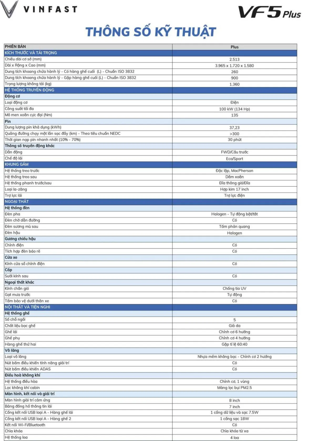 Thông số Vinfast VF5