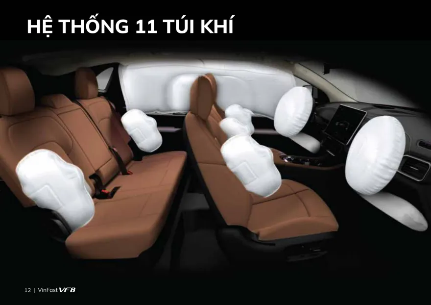 Mọi hành khách trên xe còn được đảm bảo an toàn với 11 túi khí dàn trải xung quanh. Có thể thấy, dù chỉ mới là hãng xe non trẻ nhưng VinFast đã tạo ra được những kỳ tích ấn tượng.