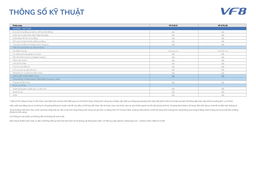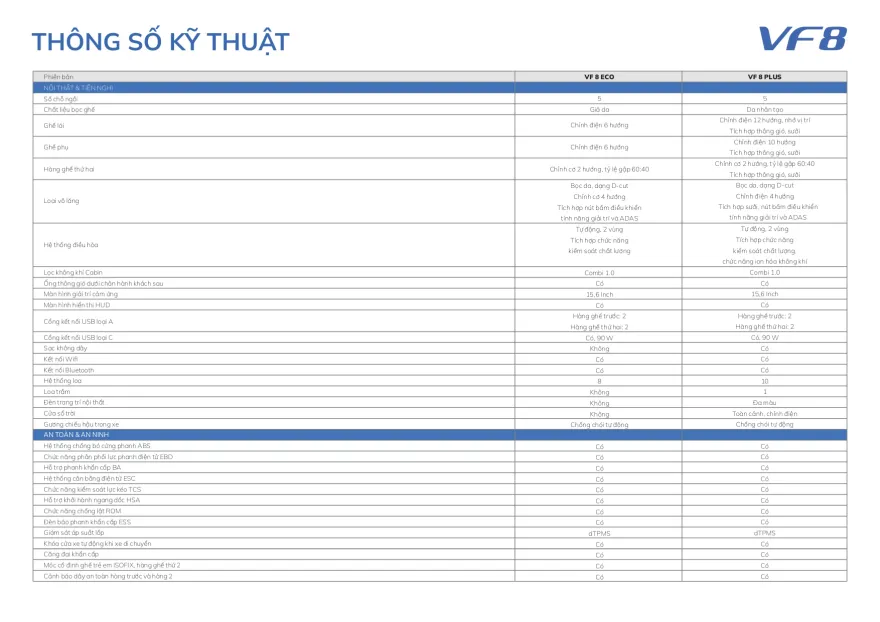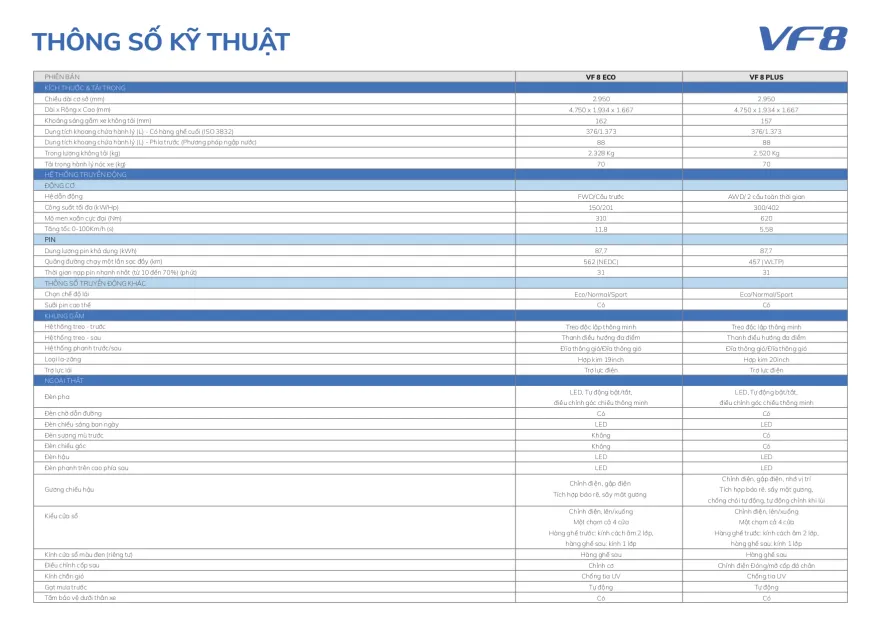 | Vinfast VF8 Eco +Pin: | 1.019.000.000 ₫ đ |