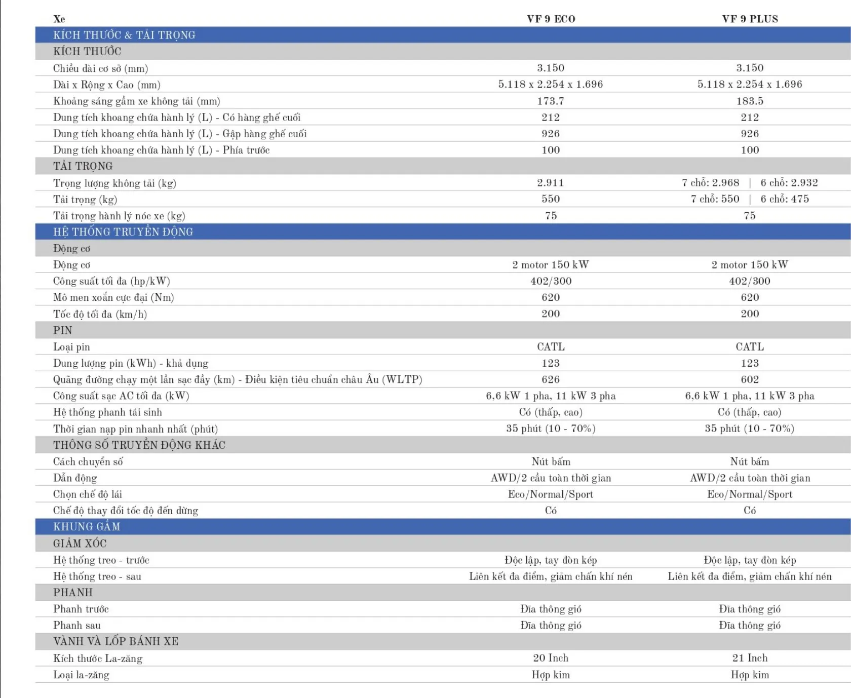 | Vinfast VF9 Plus Trần Thép + Pin: | 1.699.000.000 ₫ đ |