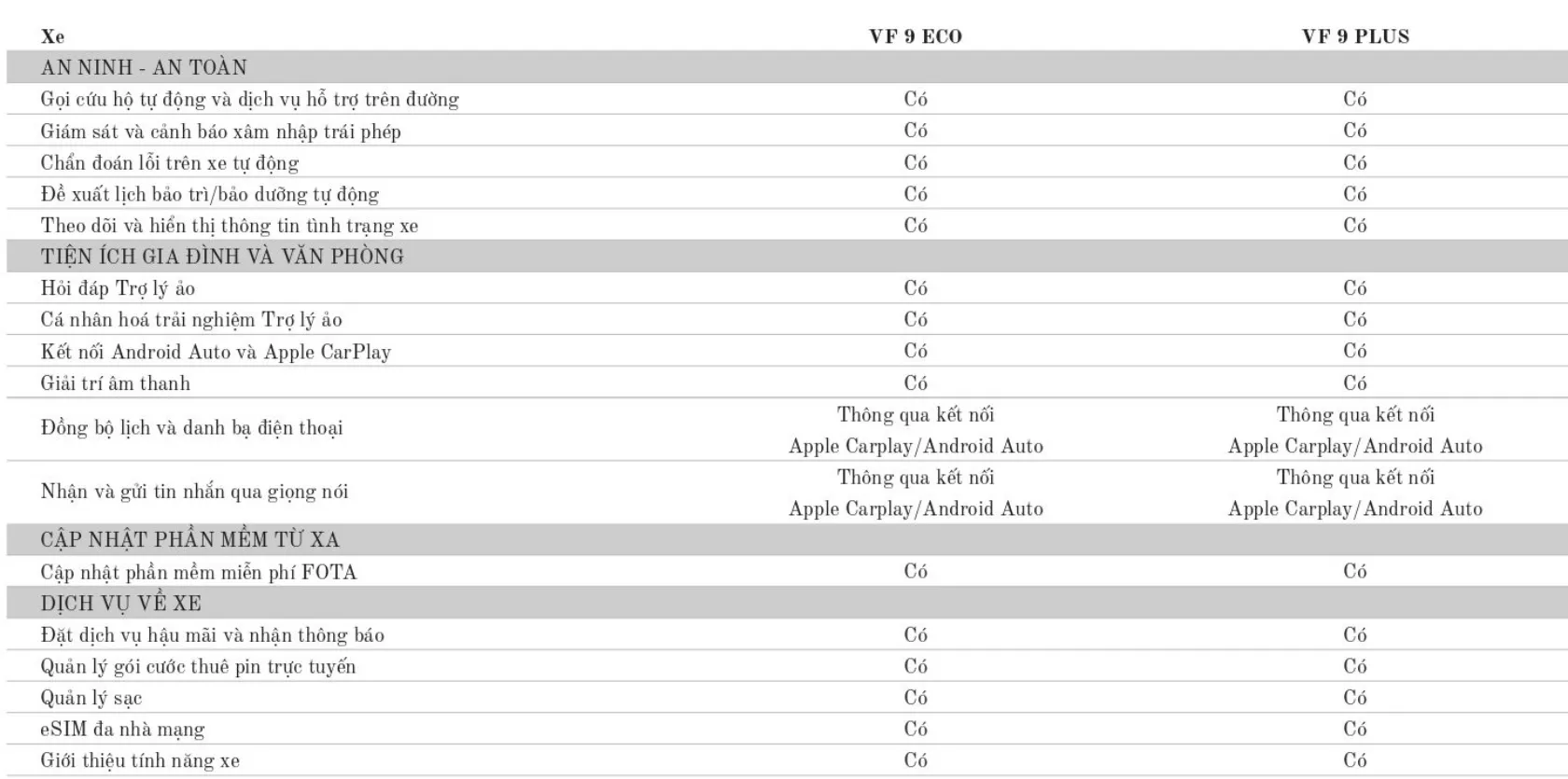 | Vinfast VF9 Eco + Pin: | 1.499.000.000 ₫ đ |